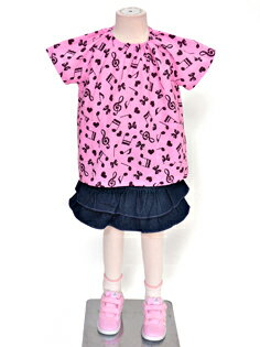 ■商品名半袖スモック 水玉音符のハーモニー(ピンク) (半袖スモック 女の子 幼稚園 エプロン 小学生 用 子供 用 書道 園 遊び着 おしゃれ 幼児スモック)■生地柄の特長ラブリーなピンク地に、ドット柄の音符が踊っているよ♪