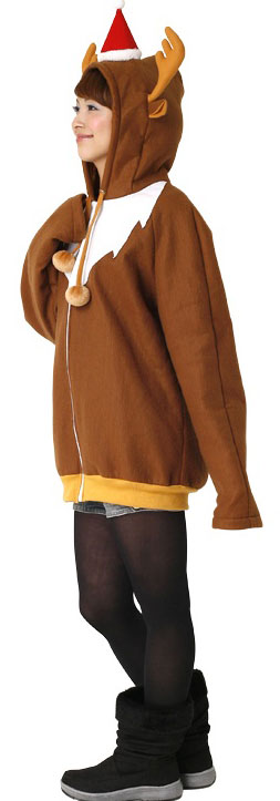 羽織るだけであっというまにトナカイに変身!おっきめパーカーなので、ユニセックスで着れちゃうよ!お外でも楽しめちゃうユニークアイテム!【セット内容】パーカー 【素材】ポリエステル100% 【着丈】パーカー:73 【開き】前ファスナー開き 【モデル身長】161cm(女性)、175cm(男性) 【洗濯表示】水洗い不可、塩素系漂白剤による漂白不可、アイロンは中温で当て布使用、ドライクリーニング可。