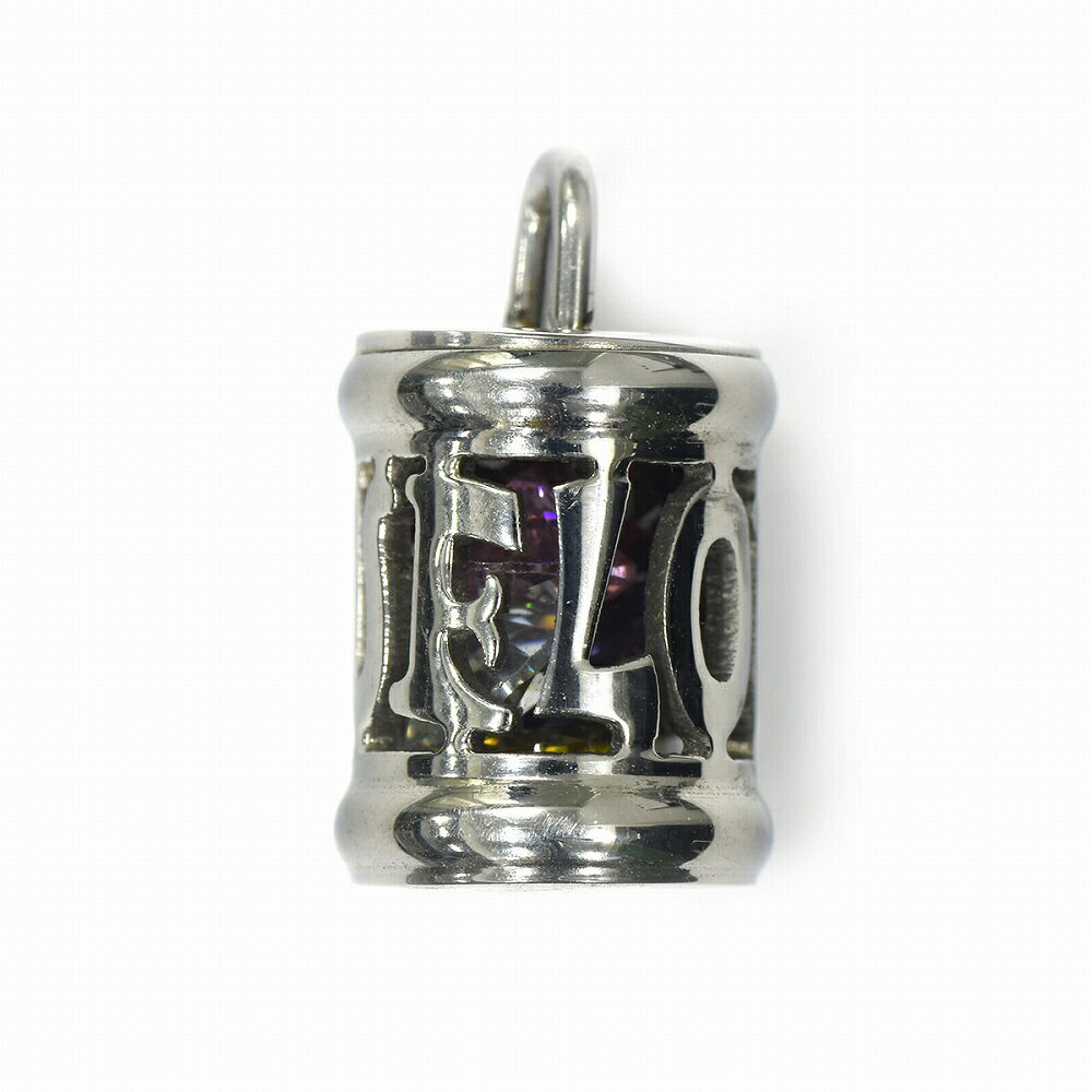 「LOVE」の文字が透かしデザインされた籠の中にカラフルなジルコニアを閉じ込めたペンダントトップです。